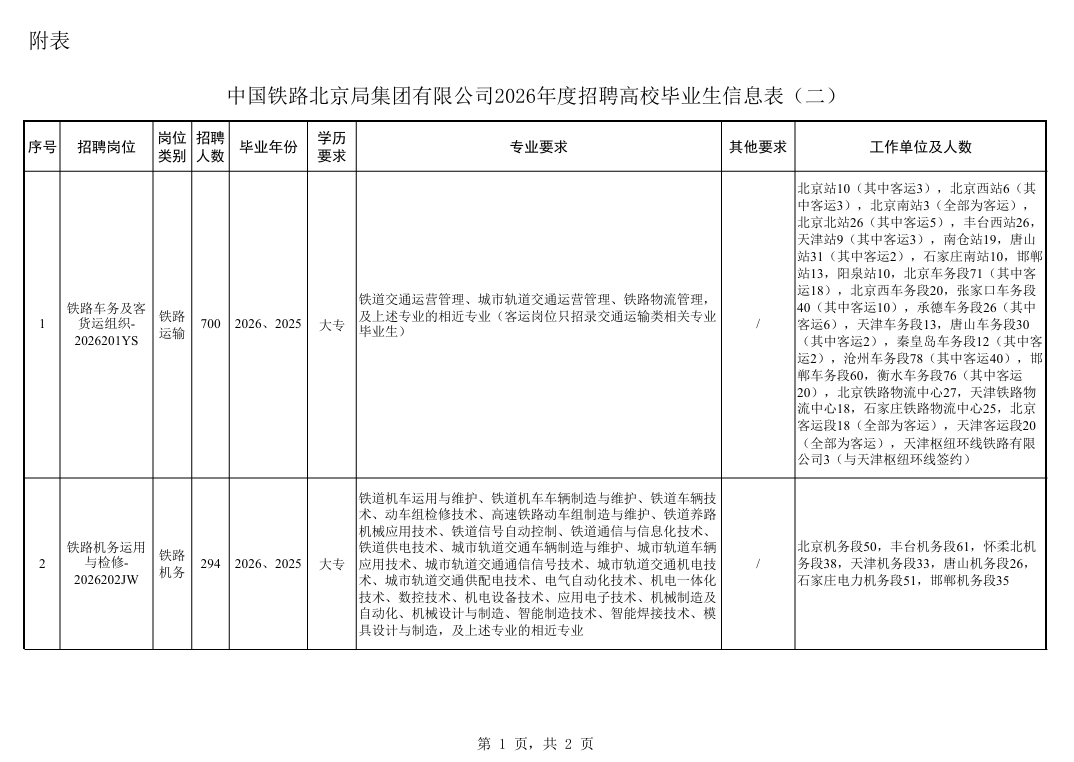 中国铁路北京局集团有限公司根据企业发展需要,招聘普通高校大专学历毕业生。具体事宜公告如下: