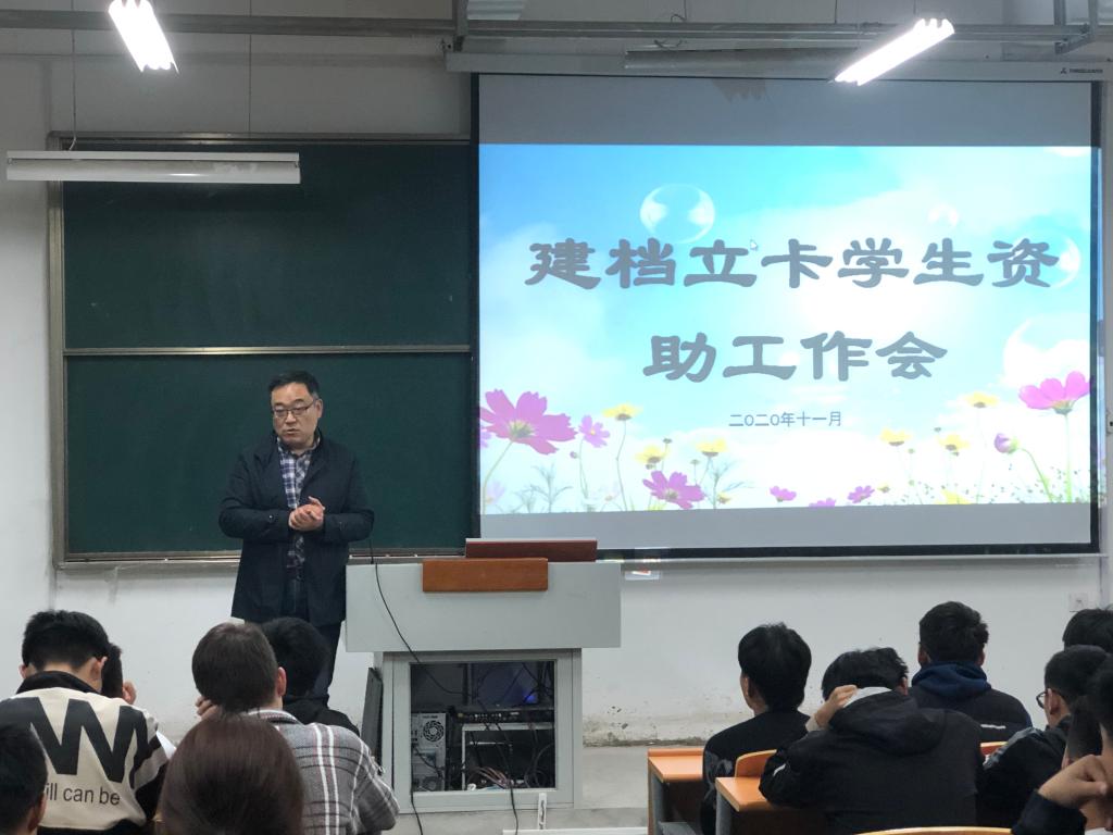 11月17日下午,学工部召集2020级建档立卡学生在一号实训楼阶梯教室召开建档立卡学生资助工作会议。校党委委员、学工部部长尹亚波,学生工作部张静、王晓晓及我校2020级100余名建档立卡学生参加会议。