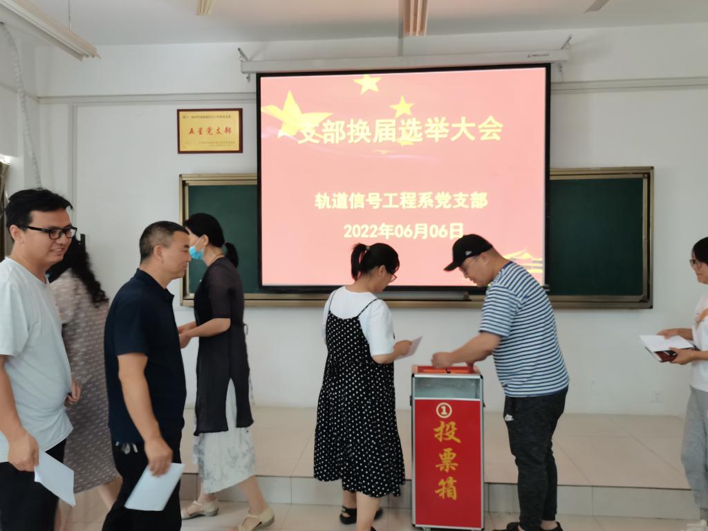 6月6日上午,轨道信号工程系党支部在1号教学楼238教室成功举行支部换届选举大会,支部全体党员参会,党支部副书记马瑞主持。