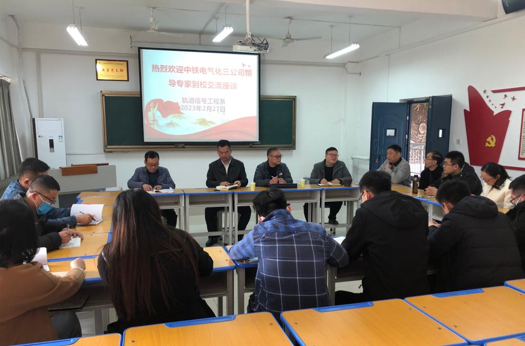 轨道信号工程系邀请中铁电气化局三公司、北京通号设计研究院专家到校招聘、宣讲与技术交流,轨道信号工程系全体教师参与。
